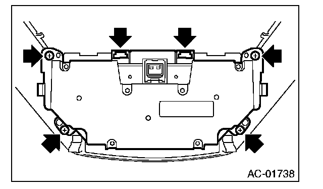 3. Remove the screw and claw and disconnect the connector to detach the control unit from the ornament panel RH.