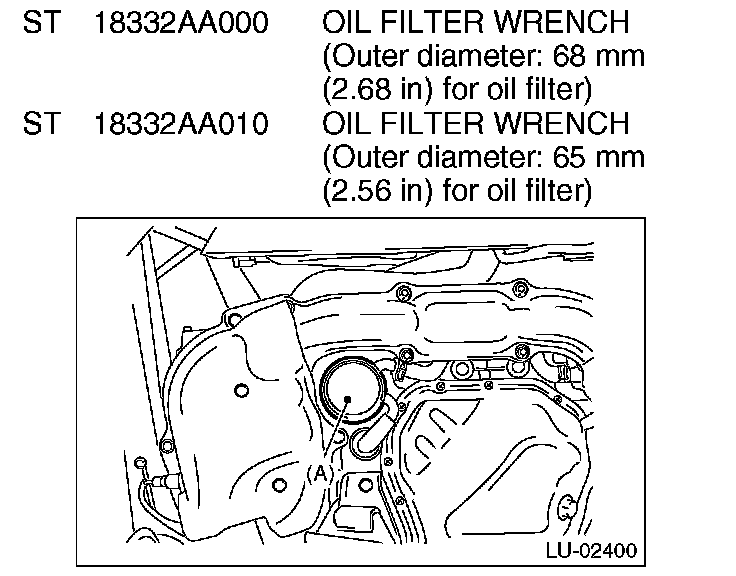 4) Remove the oil filter (A) using the ST.
