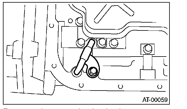 2) Temporarily install the control valve body and ground cable to the transmission, then install the oil cooler pipe.