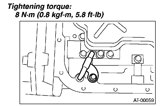 Tightening torque: 5 N-m (0.5 kgf-m, 3.6 ft-lb)