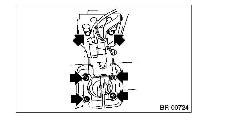 4) Remove the bolts and nuts which secure the brake pedal bracket.