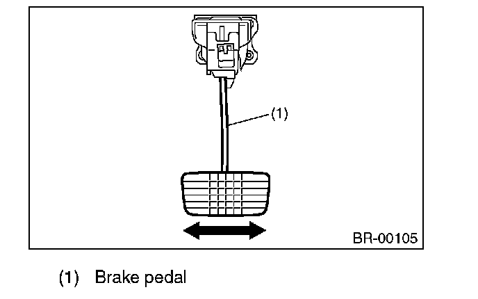 1) Move the brake pedal pads in a horizontal direction with a force of approx. 10 N (1 kgf, 2 lbf), and check that the pedal deflection is in the range of specifications.