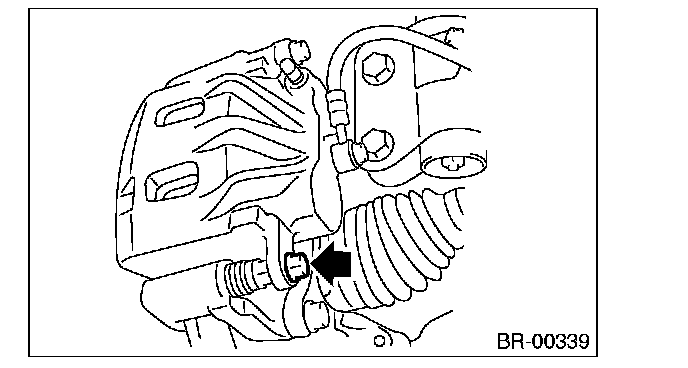 NOTE: Do not disconnect the brake hose from the caliper body.