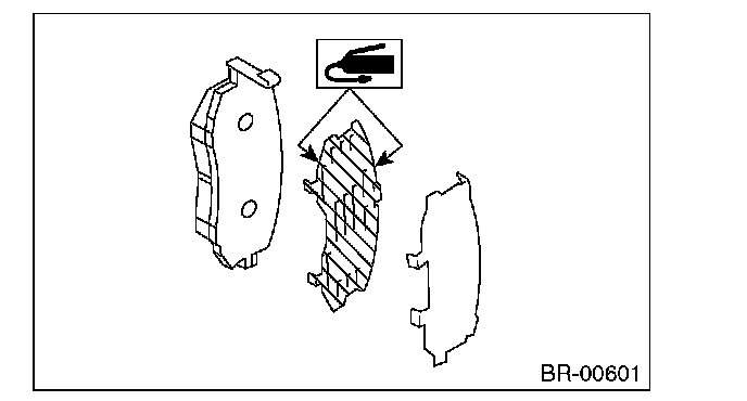 2) Apply a thin coat of Molykote AS880N (Part No. K0777YA010) or grease contained in the pad kit to both surfaces of the pad inner shim.