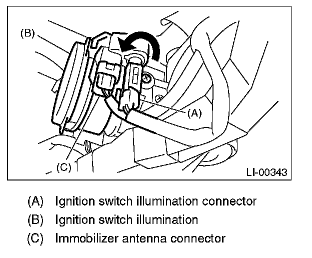 6. Turn the ignition switch illumination connector to the left and disconnect it.