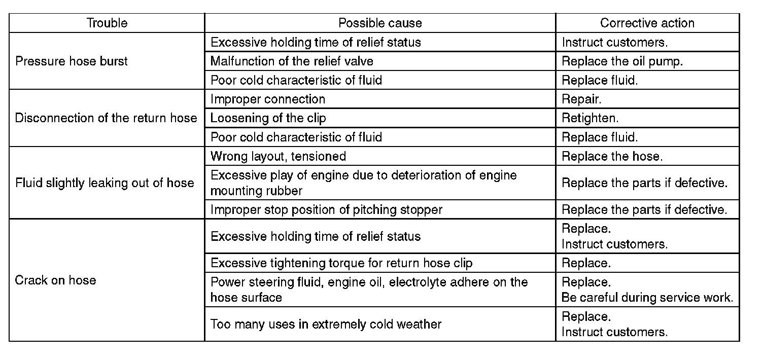 Since resistances for heat or low temperature brittleness are gradually declining according to time accumulation of hot or cold conditions for the hoses and their service lives are shortening accordingly, it is necessary to perform careful inspection frequently when the vehicle is used in hot weather areas, cold weather areas and a driving condition in which many steering operations are required in short time.