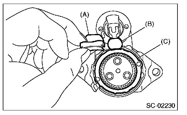 10. Attach the starter cover assembly, and affix to the brush holder assembly with screws (A).