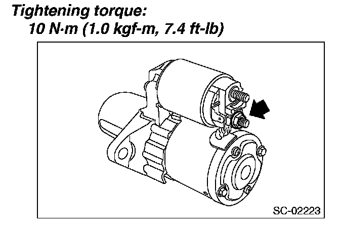13. Attach the harness to the M terminal of the magnet switch assembly, and tighten the nuts.