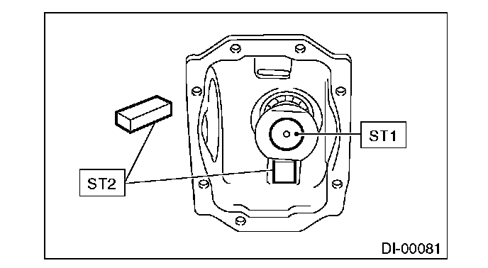 1) Install the rear bearing race into the differential carrier using ST1 and ST2.