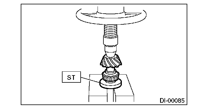 3) Install the selected pinion height adjusting washer on drive pinion, and press the rear bearing cone into position with ST.