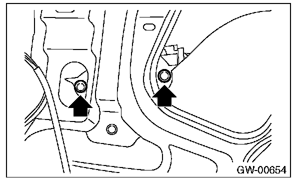 6. Remove the bolt and nuts and remove the sash. (Remove the upper attachment point first.)