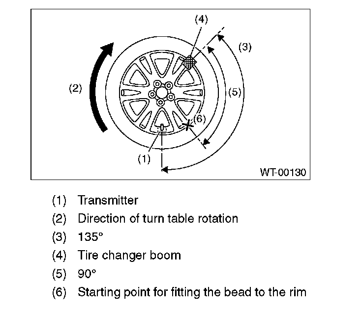 ^ To prevent damaging the transmitter, set the tire changer boom in the position as shown in the figure.