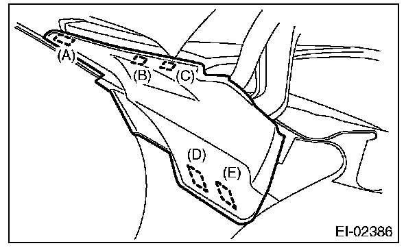 1. Detach tabs (A), (B), and (C) from the vehicle exterior.