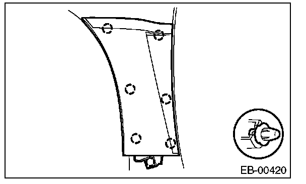 NOTE: Install while paying attention to make a uniform clearance around the front fender panel. For clearance dimensions, refer to "SPECIFICATION" in "General Description".