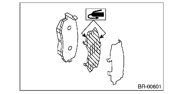2) Apply a thin coat of Molykote AS880N (Part No. K0777YA010) or grease contained in the pad kit to both surfaces of the pad inner shim.