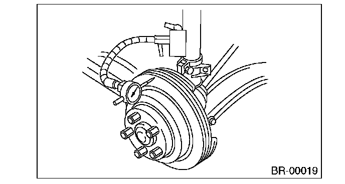 1) Check the front wheel bearing play and axle hub runout before the inspection of disc rotor runout limit.