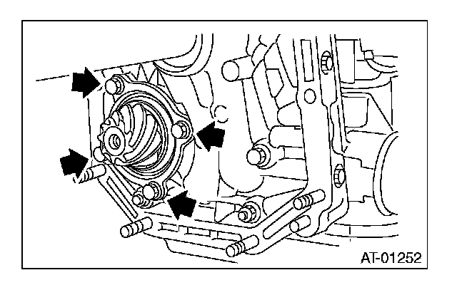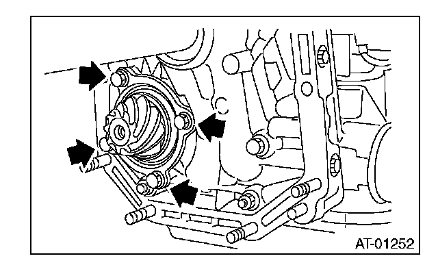 2) Install the oil pump housing assembly to the converter case, and secure them by tightening the four bolts evenly.