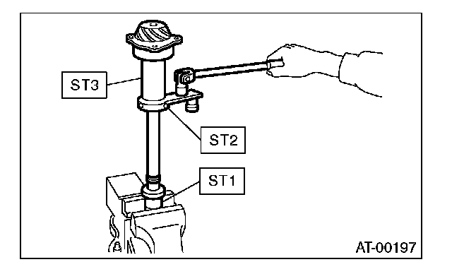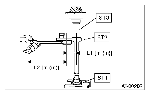 3) Rotate the drive pinion a few times using ST1 and ST2.