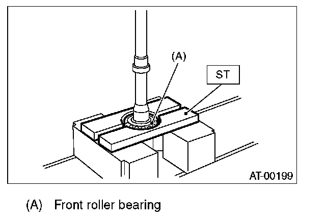 4) Separate the front roller bearing from the drive pinion shaft using a press and the ST.