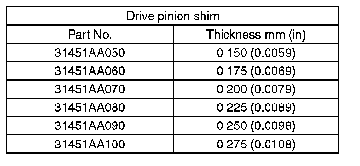 9) Calculate the thickness "t" mm (in) of the drive pinion shim.