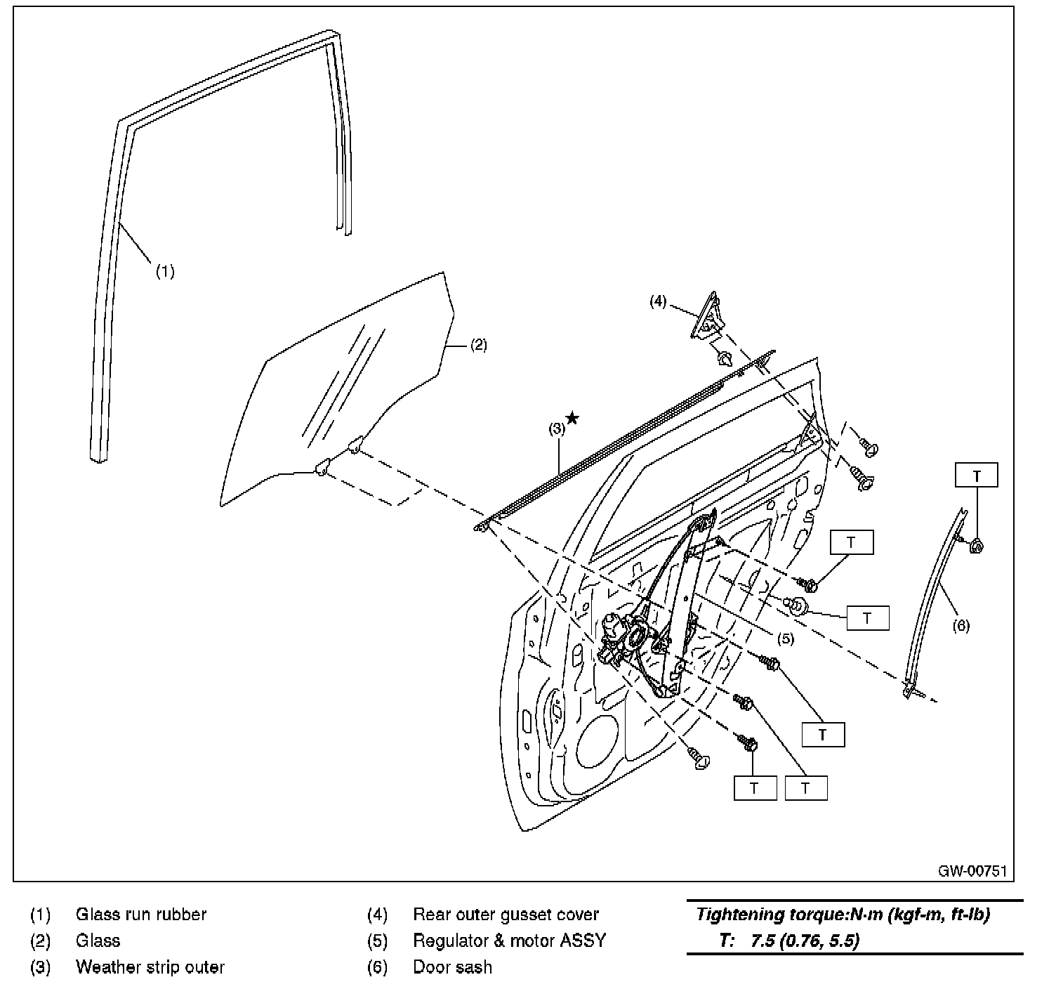 Refer to "COMPONENT" of "General Description". [Ref. to REAR DOOR GLASS, COMPONENT, General Description.]