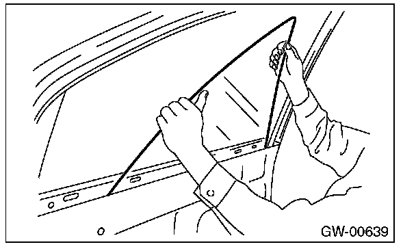 CAUTION: Make sure that the glass run rubber is placed securely in door frame and sash.