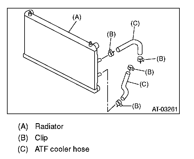 Make sure there are no ATF leaks in joints between the transmission, radiator, pipes, and hoses.