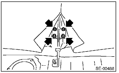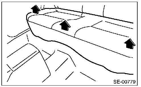 CAUTION: If the hooks on the vehicle body side disengage (remained on the seat cushion side), when the rear seat cushion is removed, always replace with new hooks.