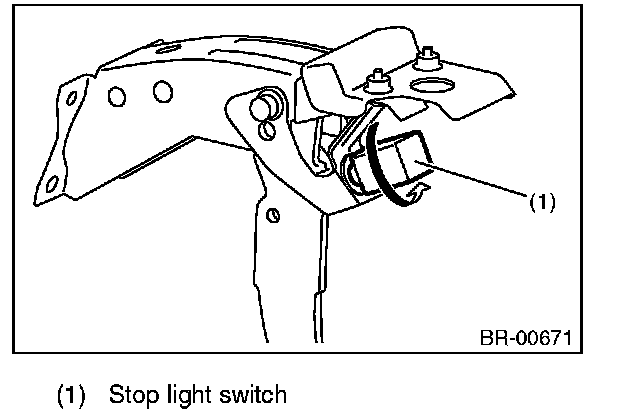 ^ Do not install the stop light switch before step 2). Installing the stop light switch before step 2) may result in the switch failing off, remaining illuminated constantly, or an illumination fault.
