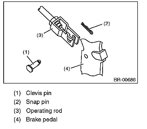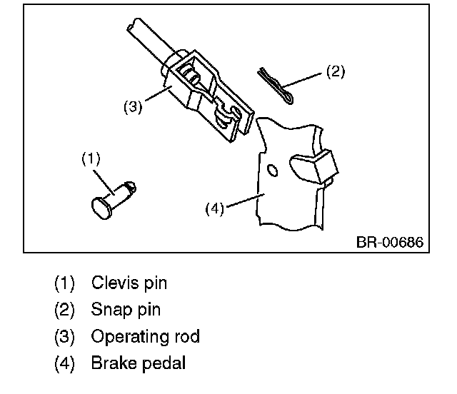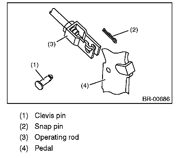 4) Remove the clevis pin which secures the brake pedal and operating rod.