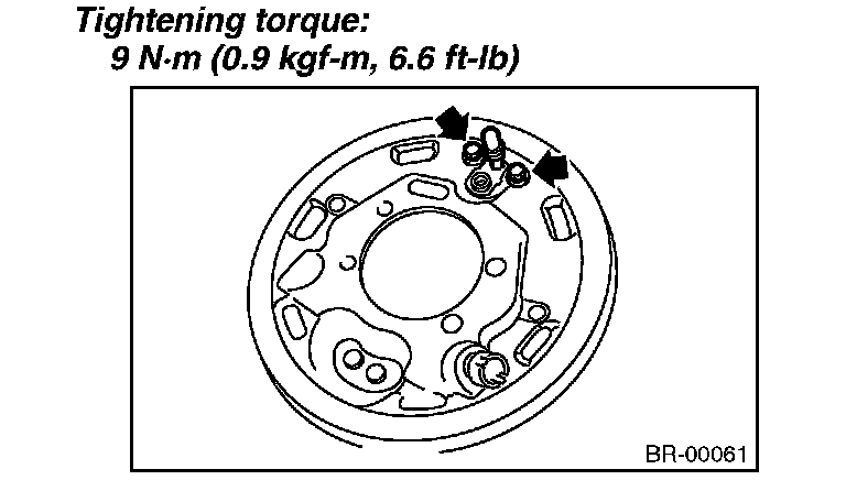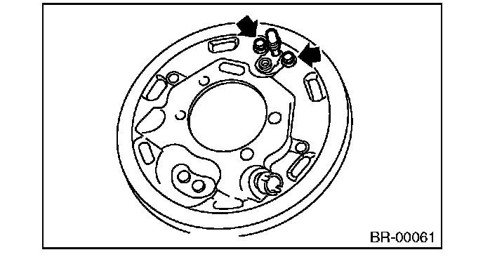2) Attach the wheel cylinder assembly onto the back plate, and tighten the bolts.