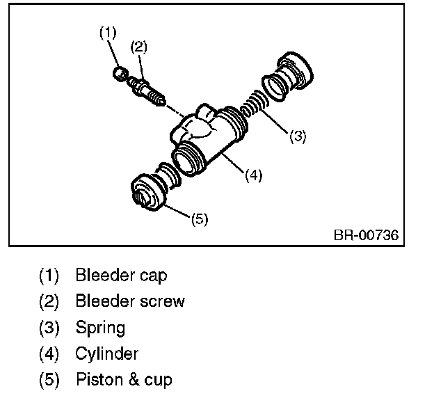 1) Remove the piston & cup and the spring from the wheel cylinder.