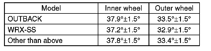 2) While depressing the brake pedal, turn the steering wheel fully to the left and right. With the steering wheel held at each fully turned position, measure both the inner and outer wheel steering angles.