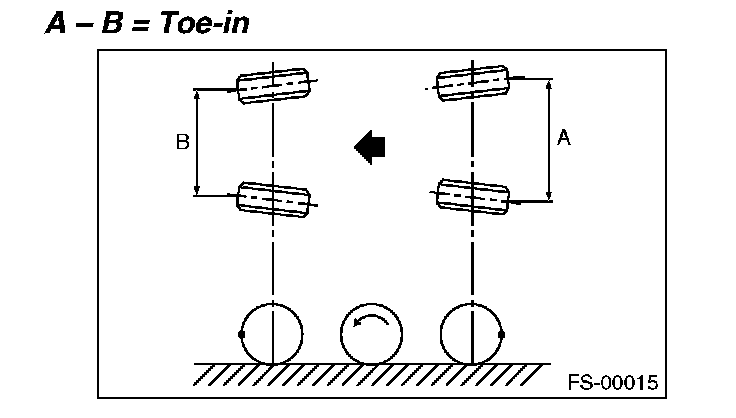 4) Measure the distance "B" between the left and right marks. Find toe-in using the following calculation:
