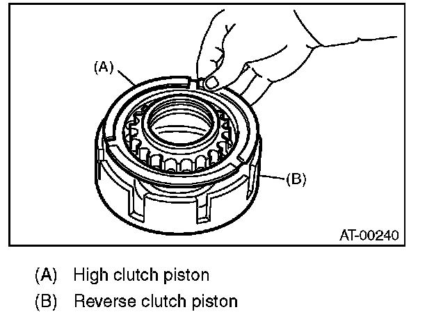 2) Install the high clutch piston to the reverse clutch piston.