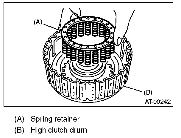 4) Install the spring retainer to the high clutch piston.