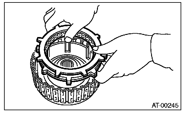 10) Install the snap ring to high clutch drum.