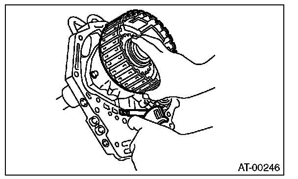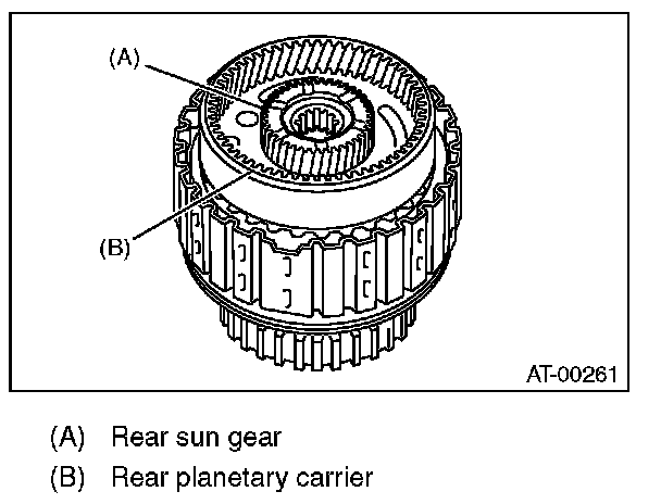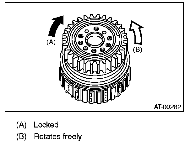 1) Measure clearance "B" between the retaining plate and snap ring. (High clutch) At this time, do not press down the retaining plate.