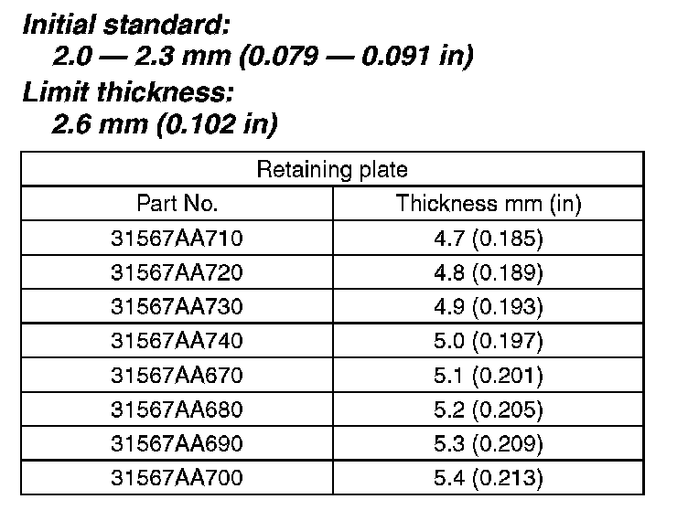 If the clearance exceeds the service limits, replace the drive plate, then select and adjust the retaining plate so that the clearance is within default standard values.