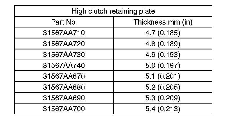 14) Selection of the reverse clutch retaining plate