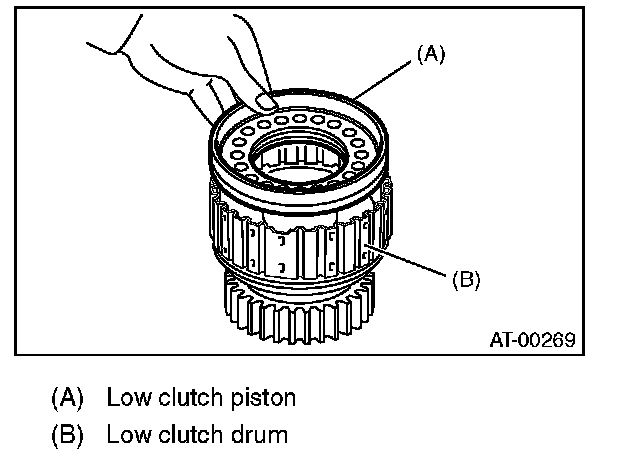 2) Install the low clutch piston to low clutch drum.