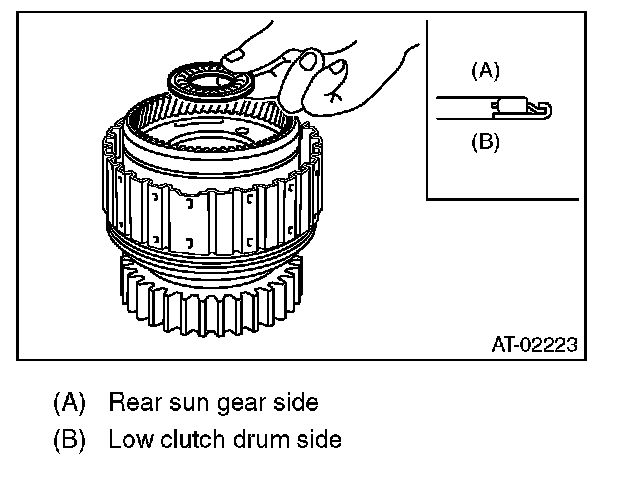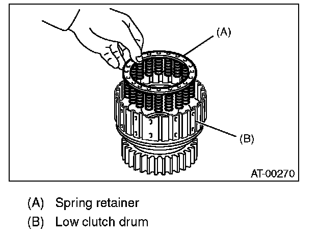 3) Install the spring retainer to low clutch piston.