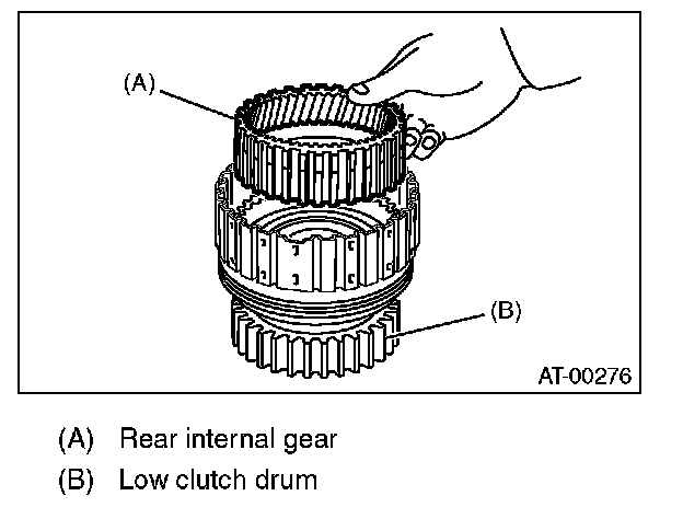 2) Check the clearance between retaining plate and low clutch operation.