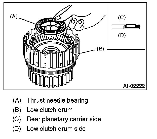 17) Install the front planetary carrier to the low clutch drum.