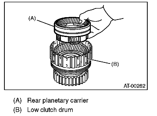 13) Install the rear planetary carrier to the low clutch drum.