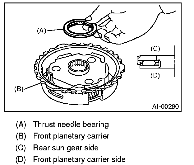 14) Install the thrust needle bearing in the correct direction.