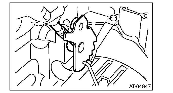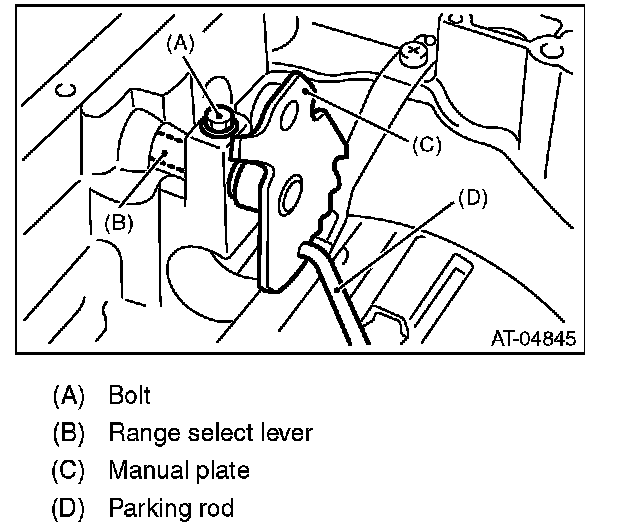 12) Remove the bolts securing select lever, and then remove the select lever, manual plate and parking rod.
