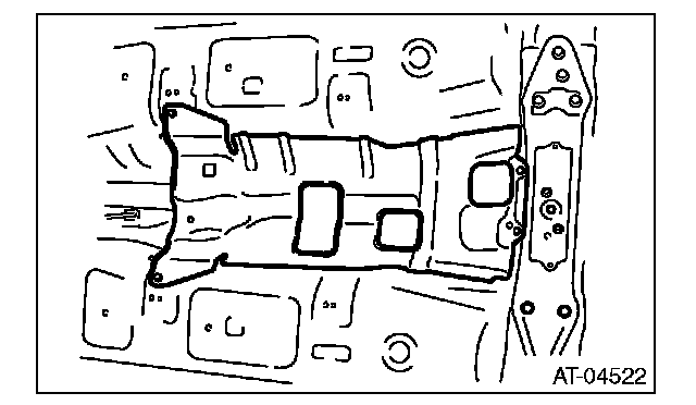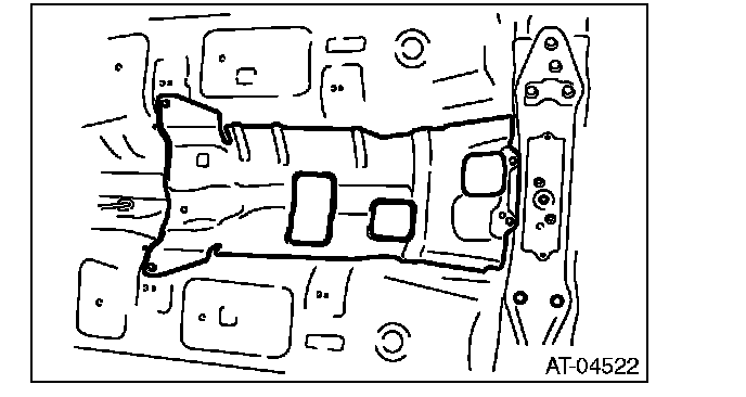 Make sure that the support plate of transmission jack does not touch the oil pan.