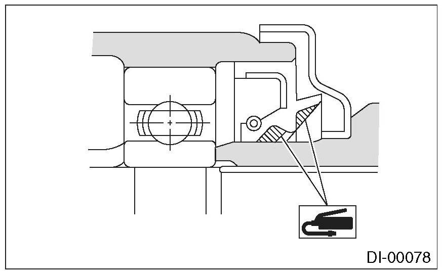 ^ Apply differential gear oil to the lips when installing the oil seal.