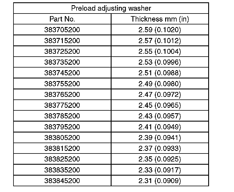 Adjust the bearing preload between front and rear bearings with spacer and washer. Pinion height adjusting washer is not affected by this adjustment. The adjustment must not be carried out with oil seal inserted.